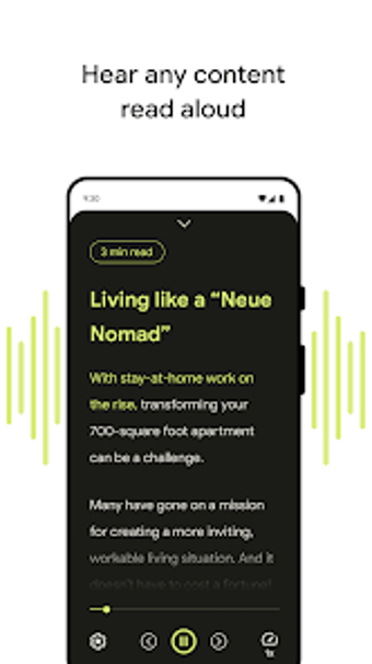 This app is also Talkback compatible, so you can use it while using your screen reader. Developers respect their client's privacy by never sending content from your phone. Some users complain about strange pronunciations; in virtually every case, huge chunks of the text are missing or out of order. It creates a perplexing experience and necessitates regular double-checking of the original text.